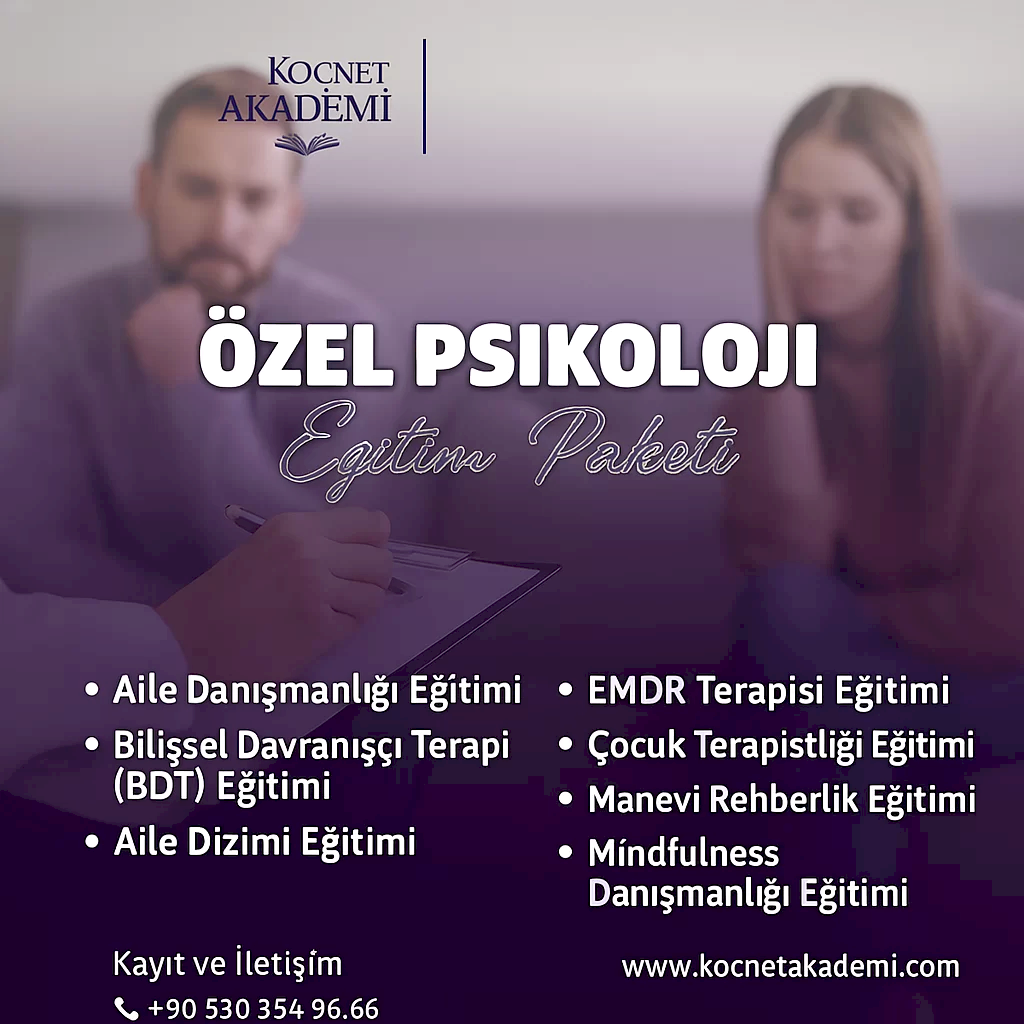 Koçnet Akademi’nin psikoloji alanında uzmanlaşmak isteyen bireyler için sunduğu bu paket; danışmanlıktan terapötik tekniklere, test uygulamalarından terapi türlerine kadar geniş bir içeriği kapsıyor. Paket içeriğindeki her eğitim, hem teorik bilgi hem de uygulamaya dönük beceriler kazandırmayı amaçlamaktadır. Online format sayesinde esnek bir öğrenme deneyimi sunar.